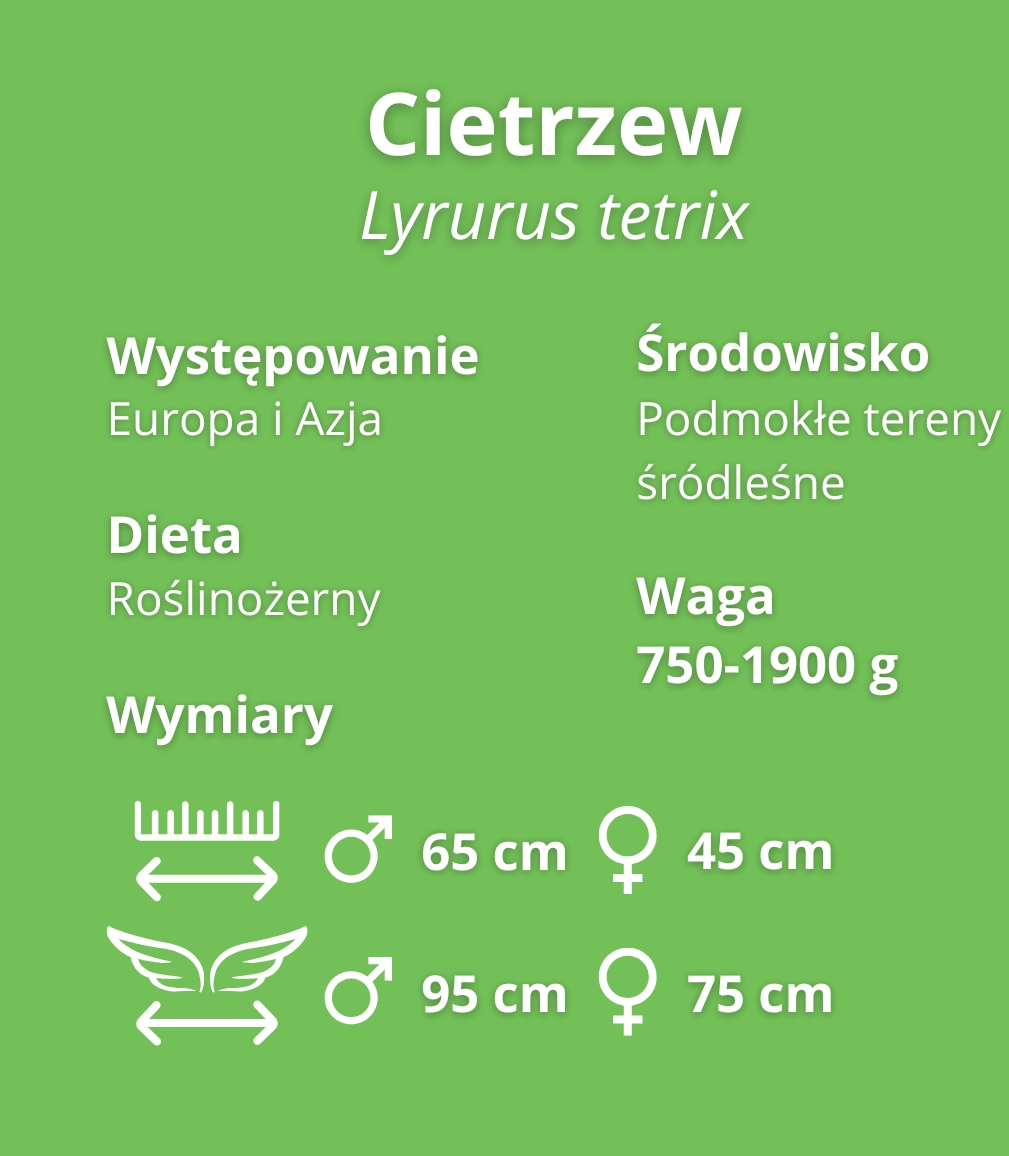 Cietrzew zamieszkuje strefę lasów i lasostepu. Preferuje obszary podmokłych łąk, torfowiska, wrzosowiska i nieużytki. Występuje w lasach o luźnym zadrzewieniu (drzewa iglaste, brzozy, olchy, wierzby) na terenach podmokłych sąsiadujących z terenami otwartymi i półotwartymi.