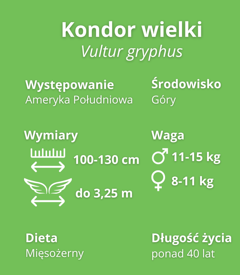Kondor wielki to jedyny przedstawiciel monotypowego rodzaju Vultur. Jest ptakiem długowiecznym – najstarszy żyjący w ogrodzie zoologicznym kondor miał 80 lat.