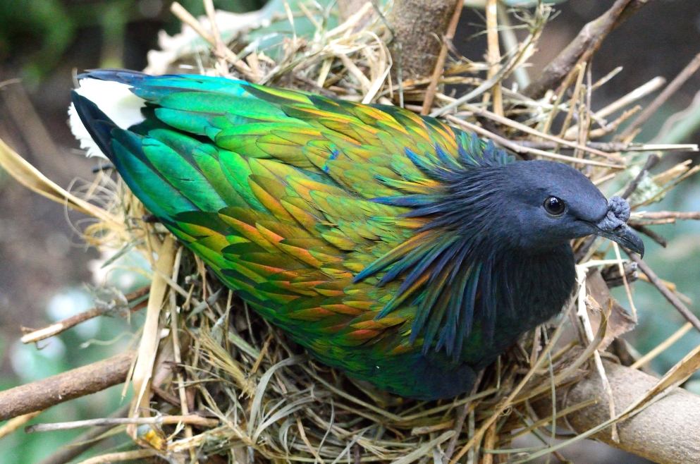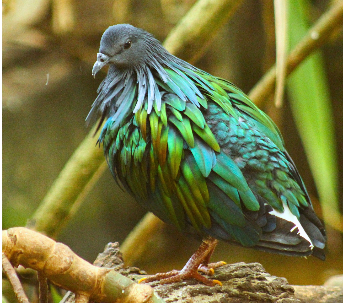Nikobarczyk zwyczajny uznawany jest za najbliższego krewnego wymarłego już dronta dodo, choć ptaki te nie są do siebie podobne.