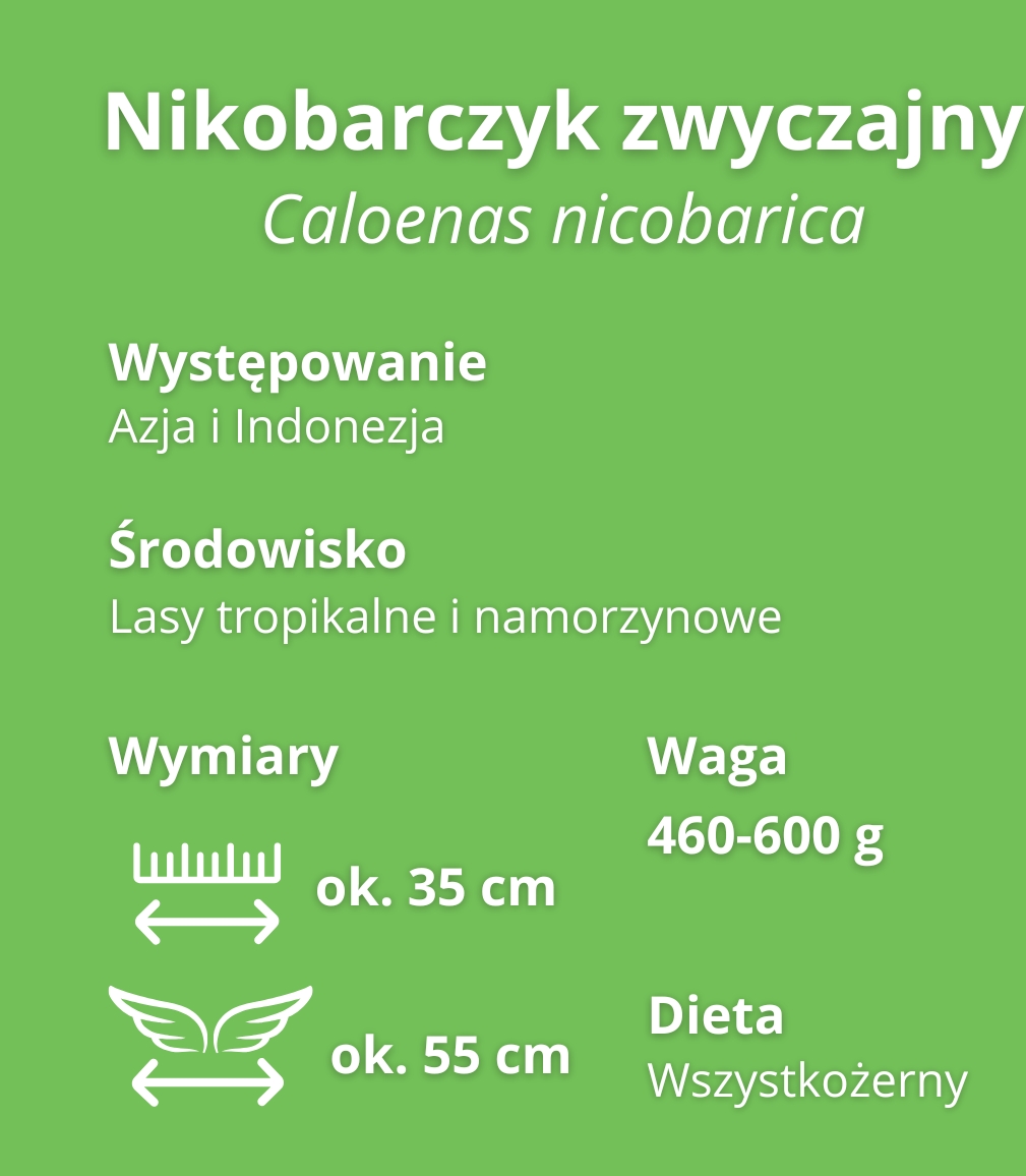 Upierzenie u obu płci jest szare od spodu, szara jest też głowa. Pióra na karku są długie i tworzą charakterystyczną grzywę. Pióra na grzbiecie i na skrzydłach są zielone, złote i miedziane z metalicznym połyskiem. Ogon biały, a nogi czerwonawe. Dziób nikobarczyka jest czarny z naroślą u nasady.
