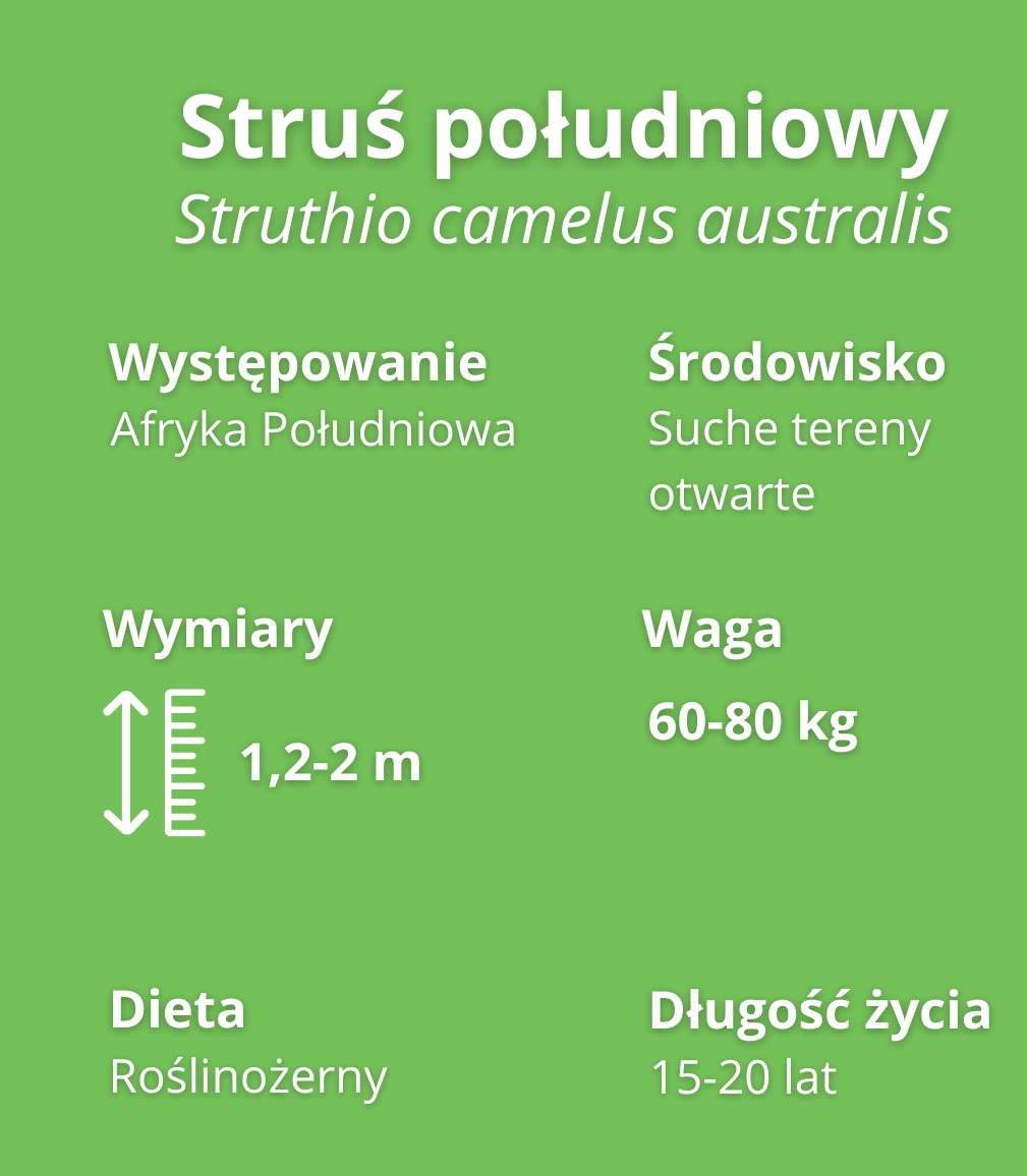 Strusie wcale nie chowają głowy w piasek, by uciec przed niebezpieczeństwem. To mit! Ptaki wtykają dziób w piasek, aby połykać kamienie. W ich żołądku może być nawet 1 kg kamieni, które ułatwiają trawienie suchych i twardych części roślin.