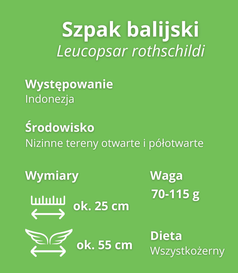 W Indonezji panuje przesąd, który mówi, że zwierzęta białe z natury i albinosy przynoszą szczęście. Szpaki były więc wyłapywane przez miejscową ludność, ale też w celach kolekcjonerskich i handlowych. Na spadek liczebności miała też wpływ utrata naturalnych siedlisk. W połowie XX wieku można było je spotkać już tylko w parku narodowym Bali Barat. Zamieszkiwały go też ostatnie tygrysy balijskie, które wyginęły. Szpaki balijskie praktycznie podzieliły ich los – w 1999 roku populację na wolności szacowano na 12 osobników. Wiele ptaków pozostawało jednak w hodowlach, dzięki czemu populację można było odnowić.