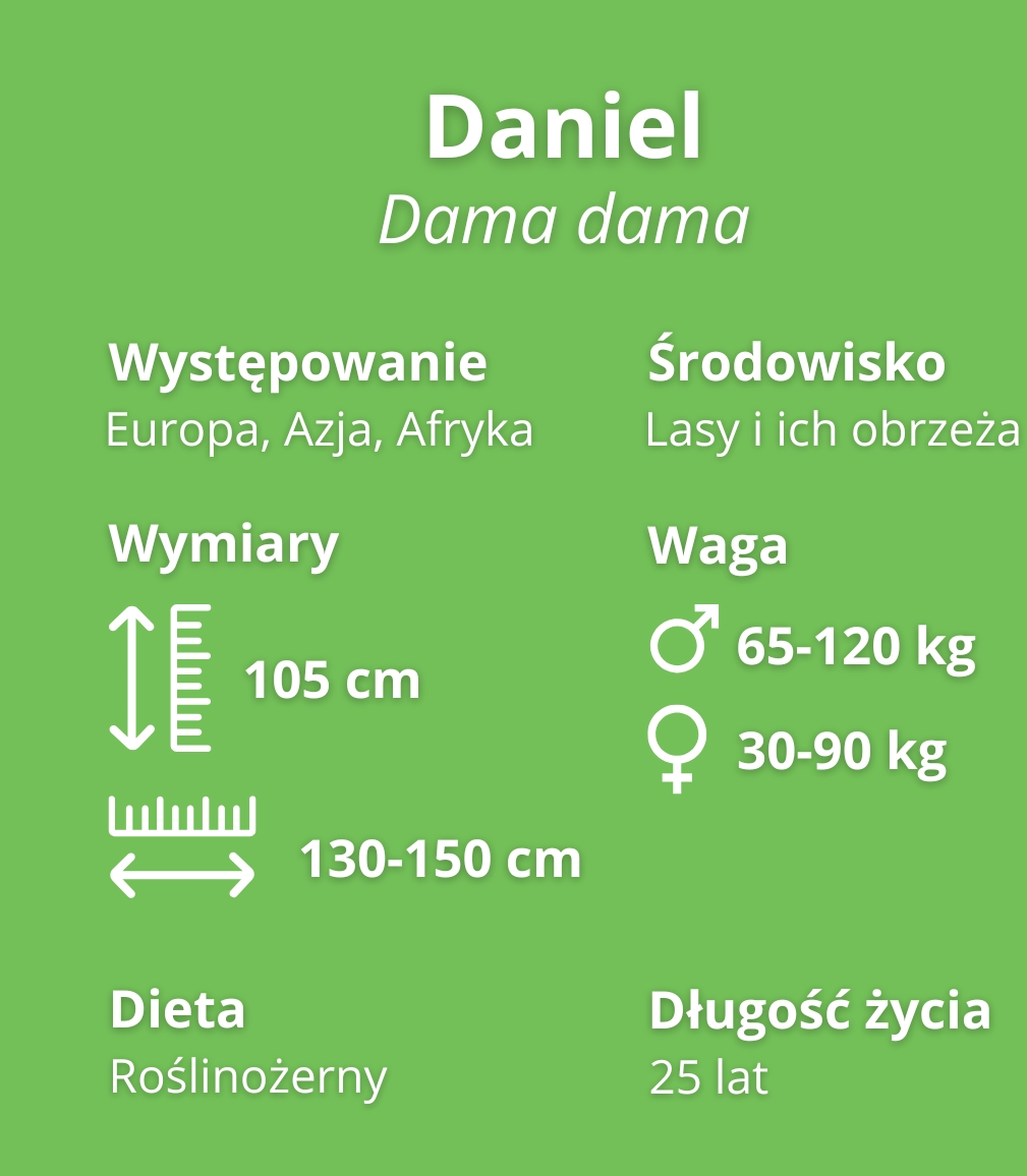 Dojrzałość płciową daniele osiągają w wieku ok. 2 lat, a dożywają 25 lat.