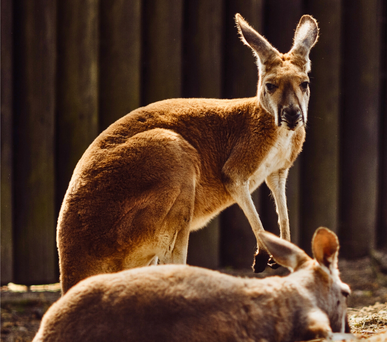 Kangur rudy to gatunek stadny – grupa liczy zazwyczaj kilka–kilkanaście osobników, ale w okresie suszy na obszarze, gdzie można znaleźć pożywienie, może liczyć ich tysiące.