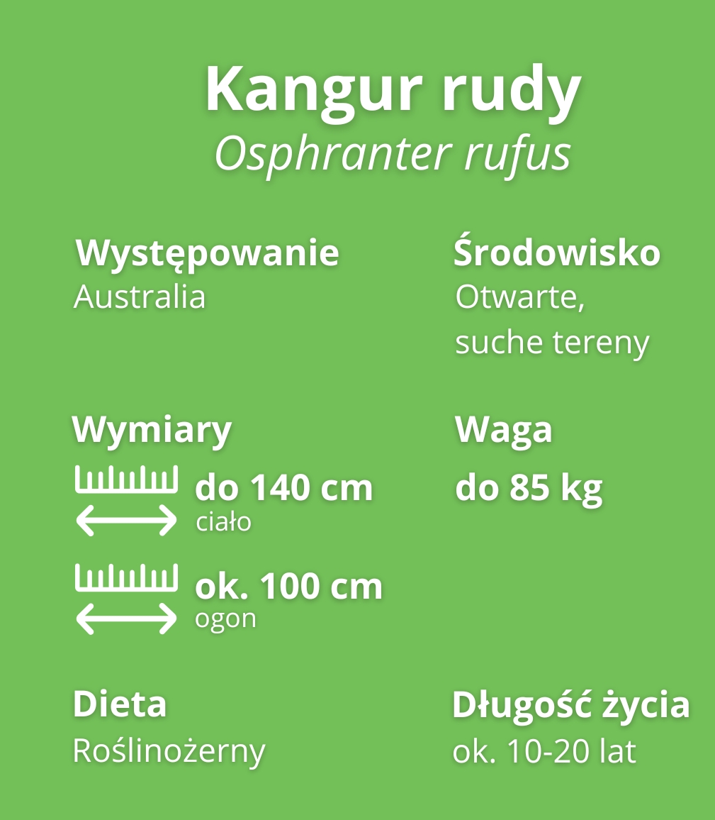 Kangur rudy to jeden z największych (obok kangura olbrzymiego i szarego) torbaczy na świecie. Długość ciała sięga 140 cm, ogona – do 100 cm. Masa ciała samców dochodzi do 85 kg. Samce tego gatunku kangura są wyraźnie większe i masywniejsze od samic.