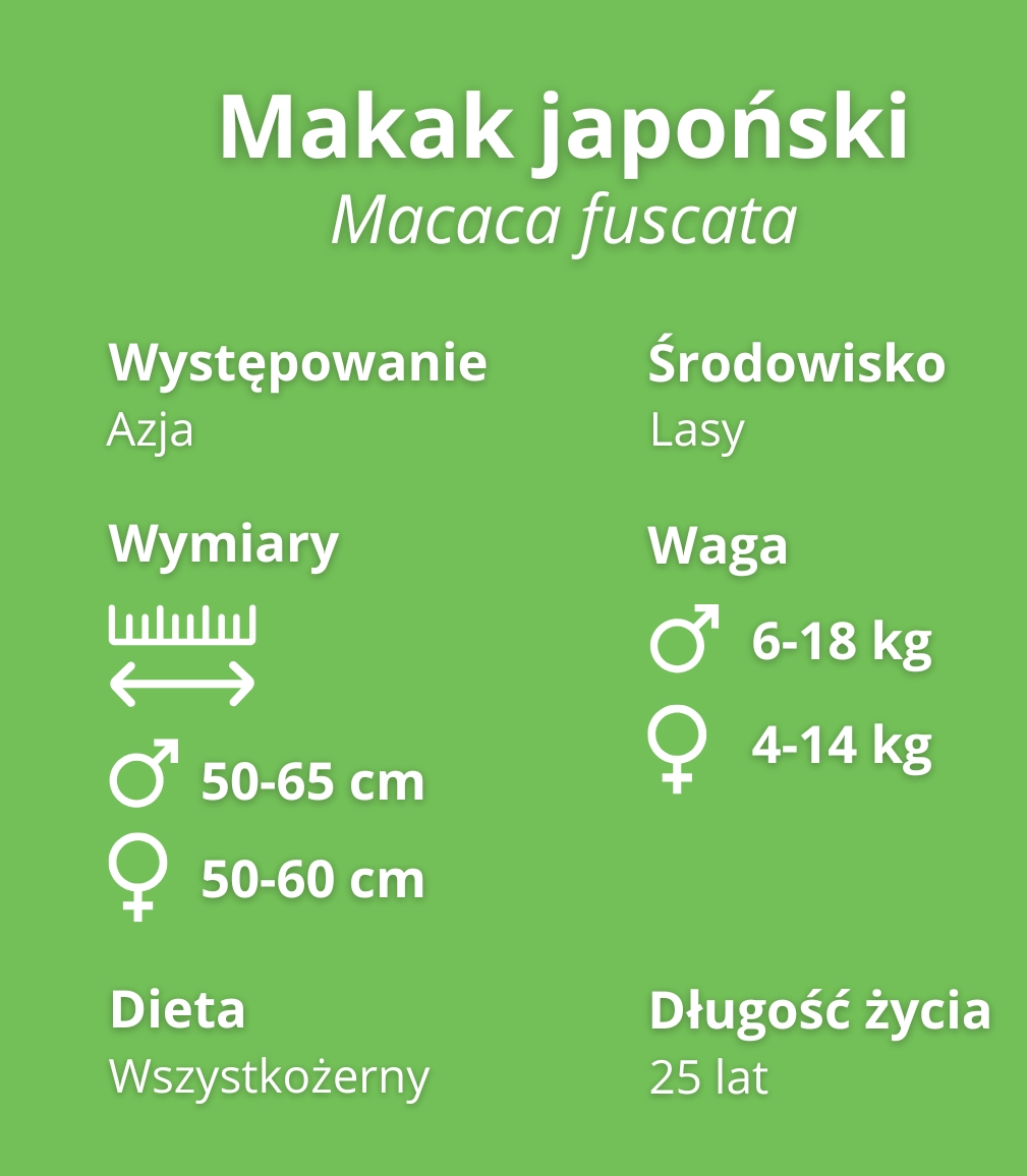 Makaki japońskie spotkać można na japońskich wyspach Honsiu, Kiusiu i Shikoku oraz w pobliżu wysepek Kōjima, Kashima, Awajishima, Shodoshima i Kinkazan.